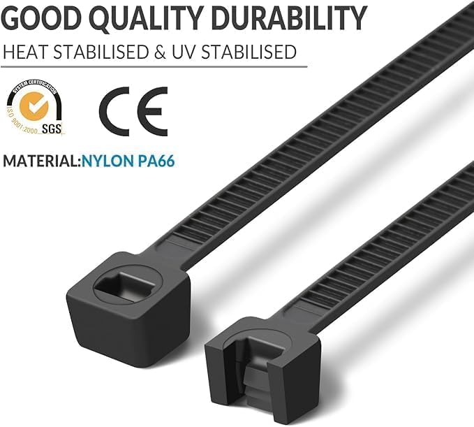 - ★【Great Design】Self-locking fastener design, sturdy and durable, easy to operate. The width of our cable tie is 0.3inch/7.6mm, which makes the cable tie stronger than the same size cable tie on the market and tensile strength could handles most purpose of binding in life.